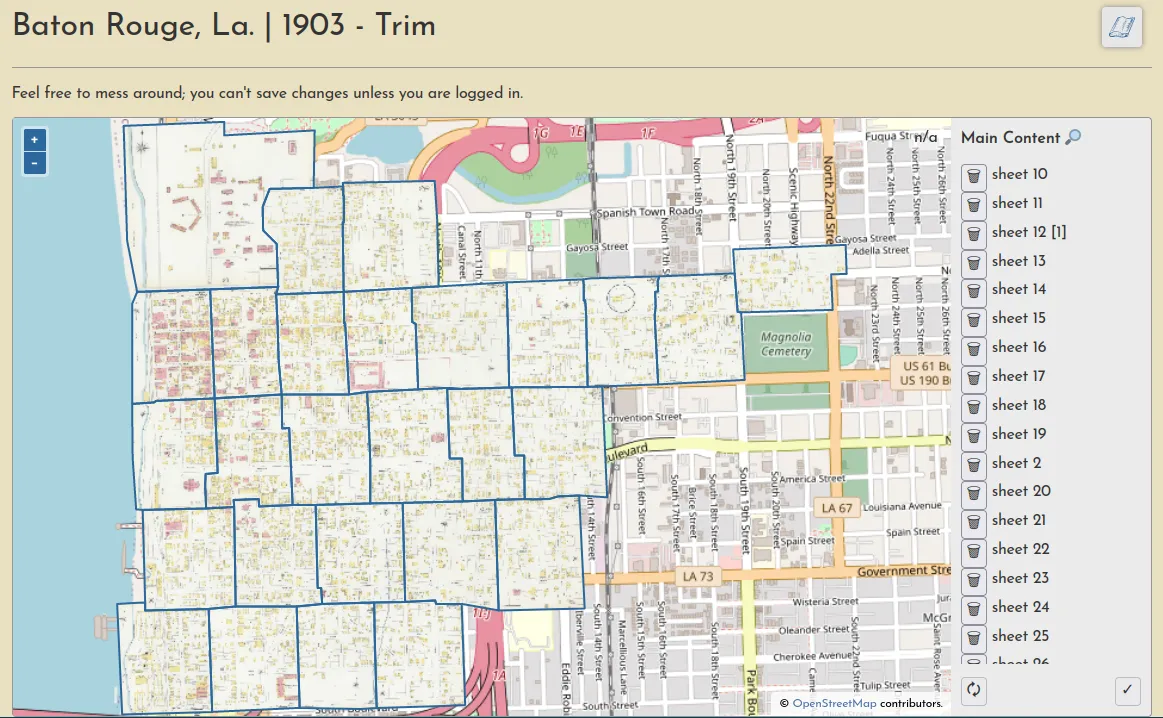 - In this application of GeoNode, the only real function Web Maps served was to facilitate the aggregation of all Sanborn maps for a given city into a single interactive interface, so I decided to automate this instead by creating the single-city viewer (described above).