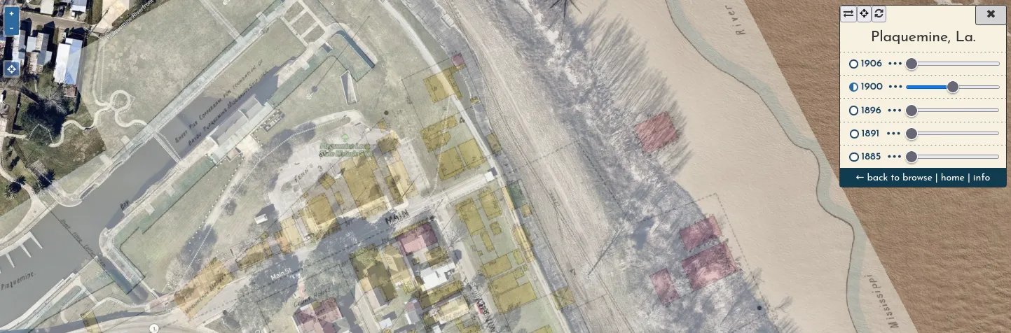 A viewer is now automatically generated for every city, showing mosaic layers for each year (e.g. Plaquemine, La.):