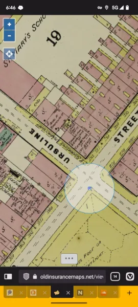 The viewer has a “locate me” button to show your current location. It’s fun! I enjoy wandering around the French Quarter while looking at 1885 New Orleans on my phone. This is also how I now tell friends where to meet me for parades: